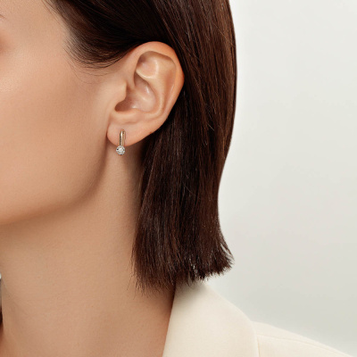 Серьги с 2 бриллиантами природными, 0.11 карат, огранка круг 57 граней, цвет 3, чистота 6, тип огранки А; Розовое золото 585 пробы.