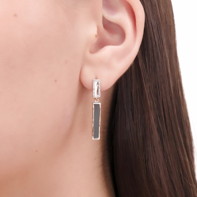 Серьги с 48 бриллиантами природными, 0.1 карат, огранка круг 17 граней, цвет 2, чистота 2, тип огранки А; 2 ониксами черными природными; Розовое золото 585 пробы.