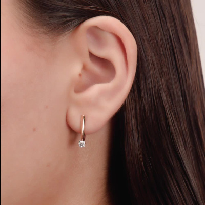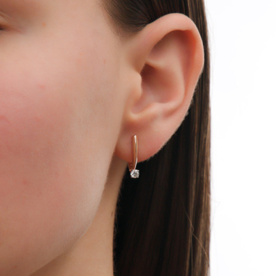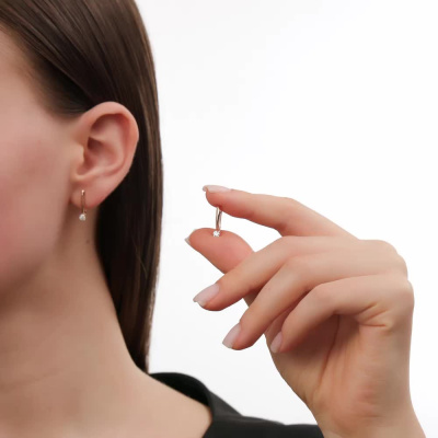 Серьги с 2 бриллиантами природными, 0.2 карат, огранка круг 57 граней, цвет 3, чистота 6, тип огранки А; Розовое золото 585 пробы.