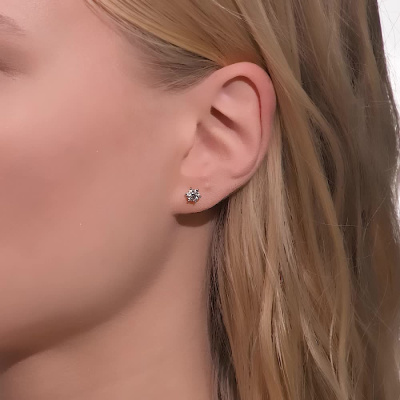 Серьги с 2 бриллиантами природными, 0.63 карат, огранка круг 57 граней, цвет 3, чистота 6, тип огранки А; Розовое золото 585 пробы.