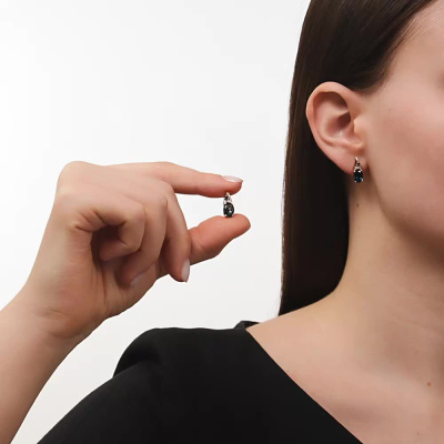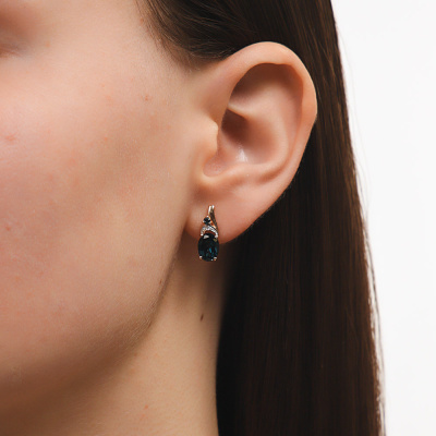 Серьги с 4 бриллиантами природными, 0.007 карат, огранка круг 17 граней, цвет 2, чистота 2, тип огранки Б; 2 топазами лондон природными, 2.65 карат; 2 топазами лондон природными, 0.09 карат; Розовое золото 585 пробы.