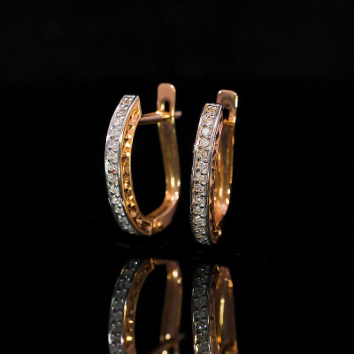 Серьги с 30 бриллиантами природными, 0.13 карат, огранка круг 17 граней, цвет 2, чистота 2, тип огранки А; Розовое золото 585 пробы.