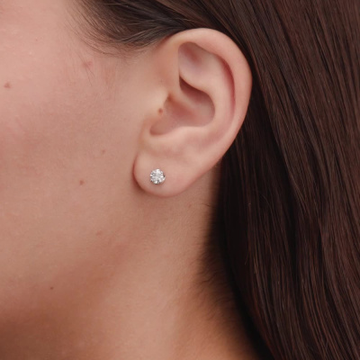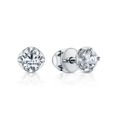 Серьги с 2 бриллиантами природными, 0.63 карат, огранка круг 57 граней, цвет 6, чистота 7, тип огранки А; Белое золото 585 пробы.