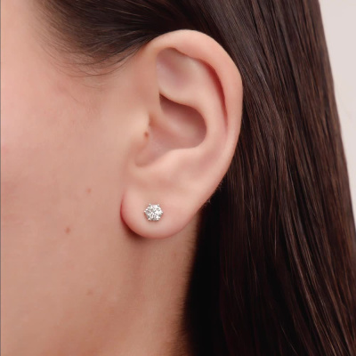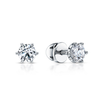Серьги с 2 бриллиантами природными, 0.8 карат, огранка круг 57 граней, цвет 5, чистота 7, тип огранки А; Белое золото 585 пробы.