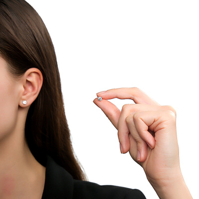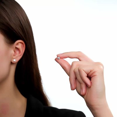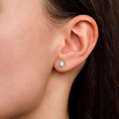 Пусеты с 2 бриллиантами природными, 0.8 карат, огранка круг 57 граней, цвет 5, чистота 8, тип огранки А; Белое золото 585 пробы.