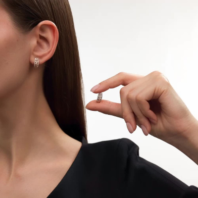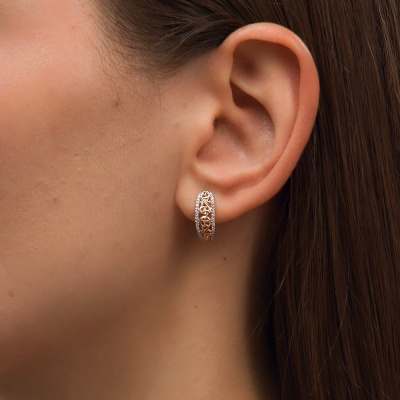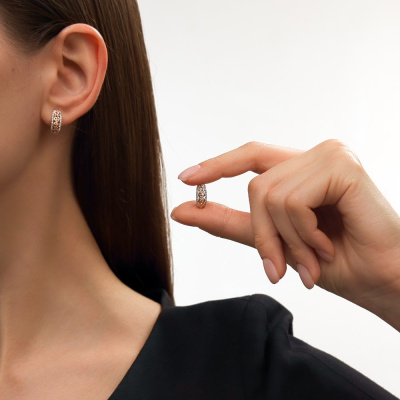 Серьги с 64 бриллиантами природными, 0.19 карат, огранка круг 17 граней, цвет 2, чистота 2, тип огранки А; Розовое золото 585 пробы.