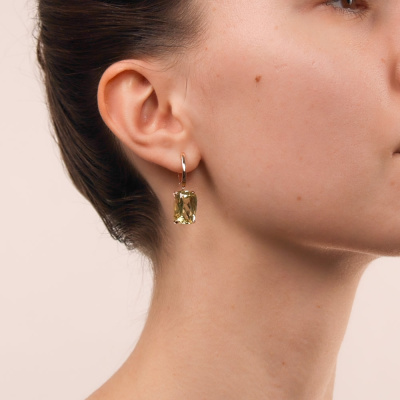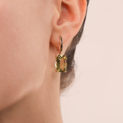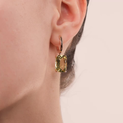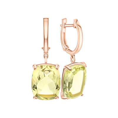 Серьги с 2 кварцами лимонными природными, 10.45 карат; Розовое золото 585 пробы.