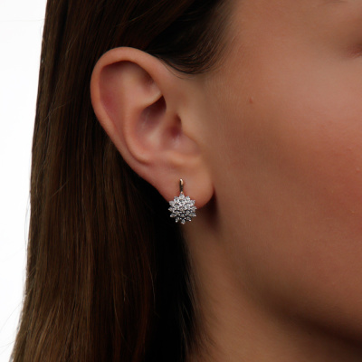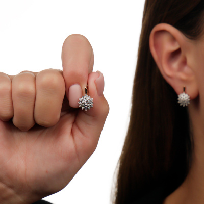 Серьги с 38 бриллиантами природными, 0.13 карат, огранка круг 17 граней, цвет 2, чистота 2, тип огранки А; Розовое и белое золото 585 пробы.