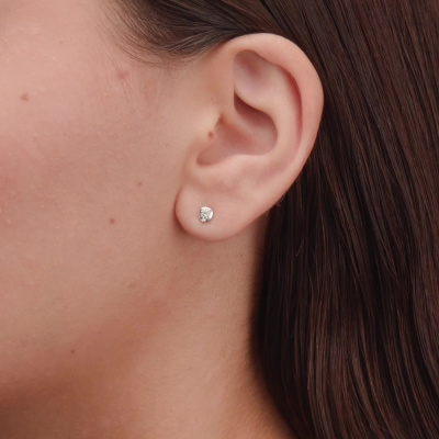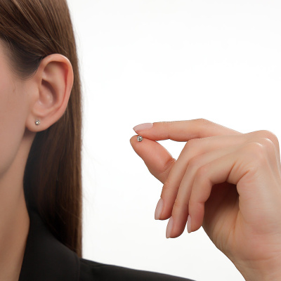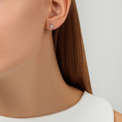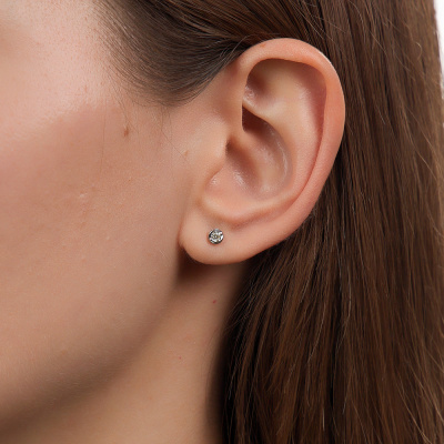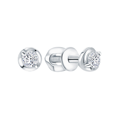 Серьги с 2 бриллиантами природными, 0.15 карат, огранка круг 57 граней, цвет 5, чистота 7, тип огранки А; Белое золото 585 пробы.