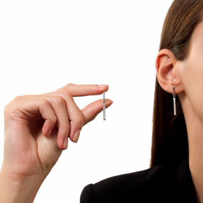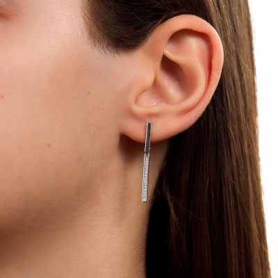 Серьги с 32 бриллиантами природными, 0.11 карат, огранка круг 17 граней, цвет 2, чистота 2, тип огранки А; Белое золото 585 пробы.