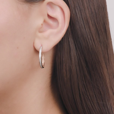 Серьги с 48 бриллиантами природными, 0.19 карат, огранка круг 17 граней, цвет 2, чистота 2, тип огранки А; Розовое золото 585 пробы.