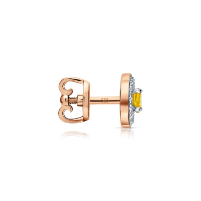 Серьги с 30 бриллиантами природными, 0.08 карат, огранка круг 17 граней, цвет 2, чистота 2, тип огранки А; 2 сапфирами желтыми природными, 0.46 карат, тип огранки В; Розовое золото 585 пробы.