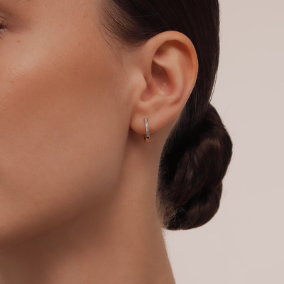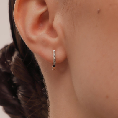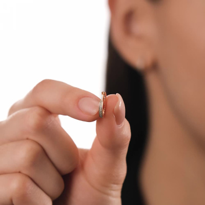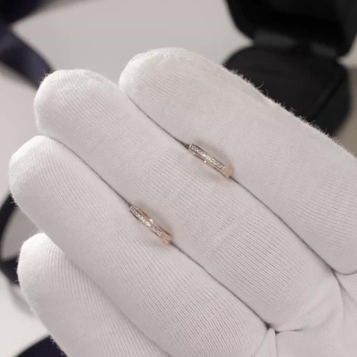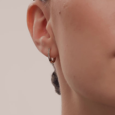 Серьги с 20 бриллиантами природными, 0.04 карат, огранка круг 17 граней, цвет 2, чистота 2, тип огранки А; Розовое золото 585 пробы.