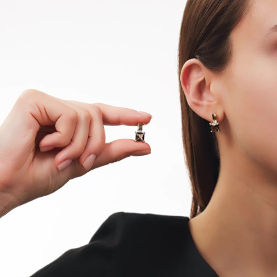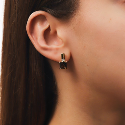 Золотые серьги с бриллиантами природными и кварцами дымчатыми природными