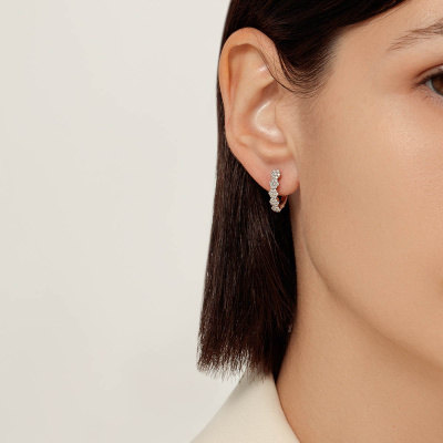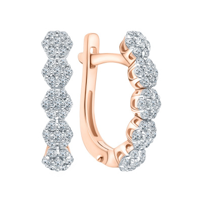 Серьги с 10 бриллиантами природными, 0.09 карат, огранка круг 57 граней, цвет 3, чистота 6, тип огранки А; 60 бриллиантами природными, 0.42 карат, огранка круг 57 граней, цвет 3, чистота 6, тип огранки А; Розовое золото 585 пробы.