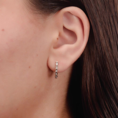 Серьги с 10 бриллиантами природными, 0.04 карат, огранка круг 17 граней, цвет 2, чистота 2, тип огранки Б; Розовое и белое золото 585 пробы.
