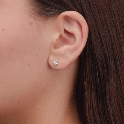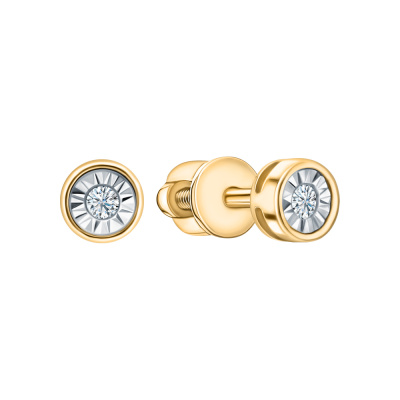 Серьги с 2 бриллиантами природными, 0.03 карат, огранка круг 57 граней, цвет 3, чистота 5, тип огранки А; Желтое золото 585 пробы.