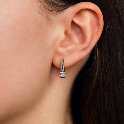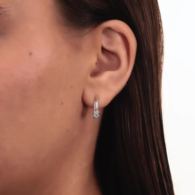 Серьги с 2 бриллиантами природными, 0.21 карат, огранка круг 57 граней, цвет 3, чистота 6, тип огранки А; 24 бриллиантами природными, 0.04 карат, огранка круг 57 граней, цвет 3, чистота 6, тип огранки А; Розовое золото 585 пробы.