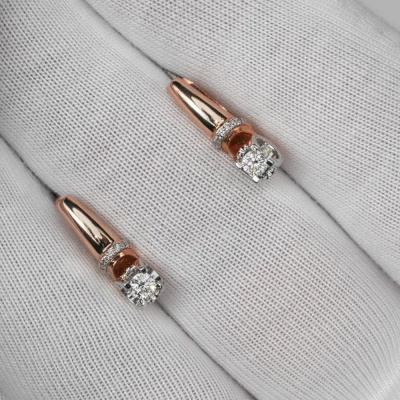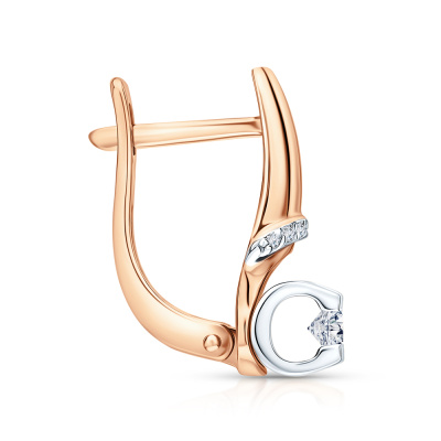 Серьги с 2 бриллиантами природными, 0.2 карат, огранка круг 57 граней, цвет 3, чистота 6, тип огранки А; 14 бриллиантами природными, 0.03 карат, огранка круг 57 граней, цвет 3, чистота 6, тип огранки А; Розовое золото 585 пробы.