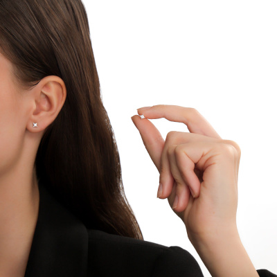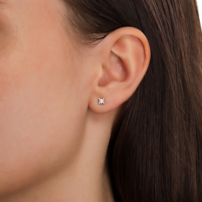 Серьги с 2 бриллиантами природными, 0.16 карат, огранка круг 57 граней, цвет 3, чистота 6, тип огранки А; Белое золото 585 пробы.