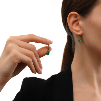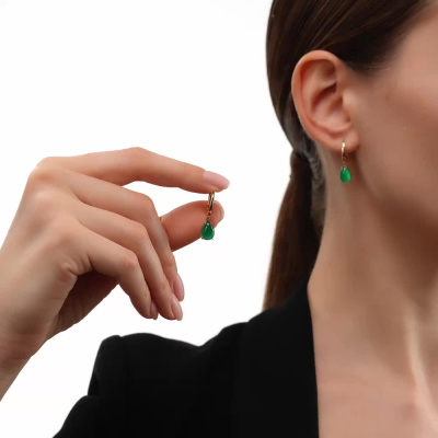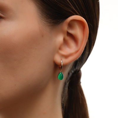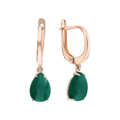Серьги с 2 агатами зелеными природными; Розовое золото 585 пробы.
