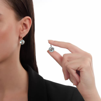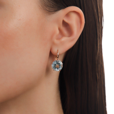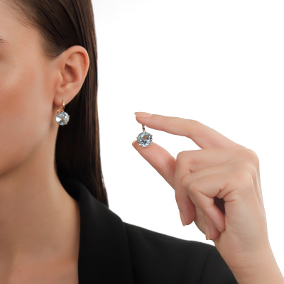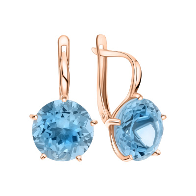 Серьги с 2 топазами скай природными, 12.4 карат; Розовое золото 585 пробы.