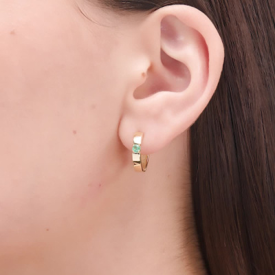 Серьги с 2 изумрудами природными, 0.17 карат, цвет 3, чистота 3, тип огранки В; Желтое золото 585 пробы.