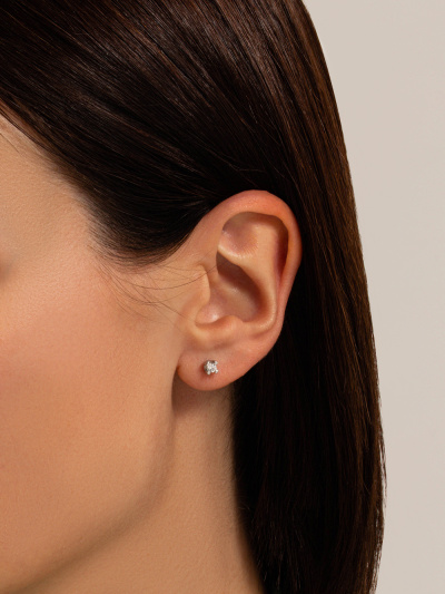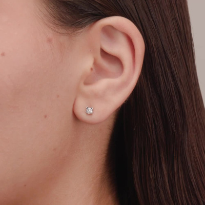 Серьги с 2 бриллиантами природными, 0.15 карат, огранка круг 57 граней, цвет 3, чистота 6, тип огранки А; Белое золото 585 пробы.