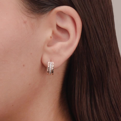 Серьги с 18 бриллиантами природными, 0.08 карат, огранка круг 17 граней, цвет 2, чистота 2, тип огранки А; Розовое золото 585 пробы.