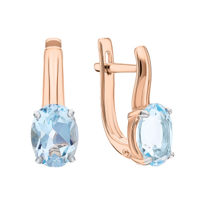 Серьги с 2 топазами скай природными, 2.78 карат; Розовое золото 585 пробы.