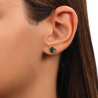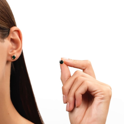 Серьги с 2 гидротермальными изумрудами, 1.36 карат; Розовое золото 585 пробы.