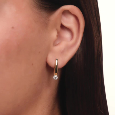 Серьги с 2 бриллиантами природными, 0.51 карат, огранка круг 57 граней, цвет 3, чистота 6, тип огранки А; Желтое золото 585 пробы.