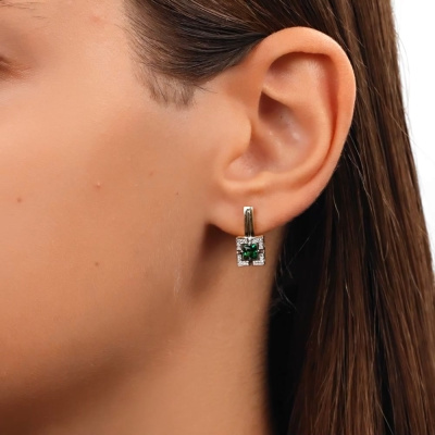 Золотые серьги с бриллиантами природными и изумрудами выращенными