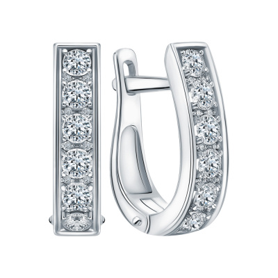 Серьги с 12 бриллиантами природными, 0.7 карат, огранка круг 57 граней, цвет 3, чистота 6, тип огранки А; 20 бриллиантами природными, 0.03 карат, огранка круг 17 граней, цвет 2, чистота 2, тип огранки А; Белое золото 585 пробы.