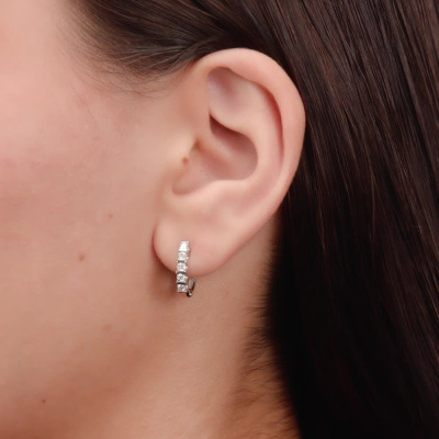 Серьги с 10 бриллиантами природными, 0.38 карат, огранка круг 57 граней, цвет 3, чистота 6, тип огранки А; Белое золото 585 пробы.