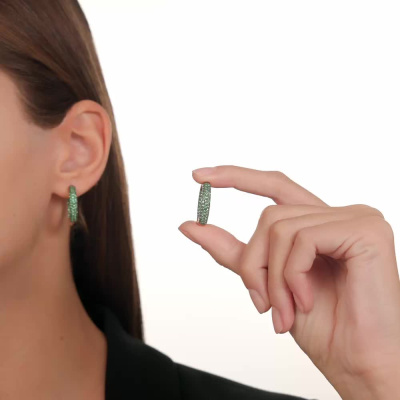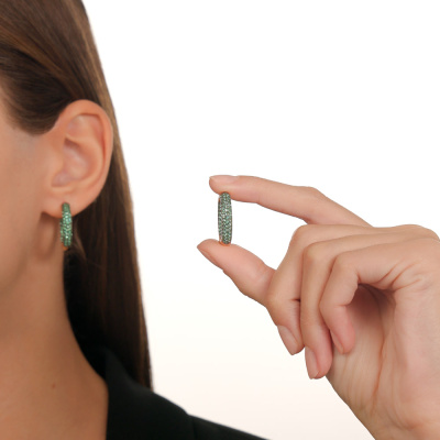 Серьги с 136 изумрудами природными, 1.74 карат, цвет 3, чистота 3, тип огранки В; Желтое золото 585 пробы.