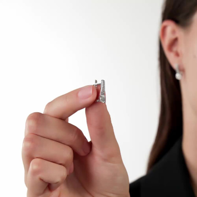 Серьги с 2 бриллиантами природными, 0.01 карат, огранка круг 57 граней, цвет 4, чистота 5, тип огранки А; 44 бриллиантами природными, 0.2 карат, огранка круг 17 граней, цвет 2, чистота 2, тип огранки А; Белое золото 585 пробы.