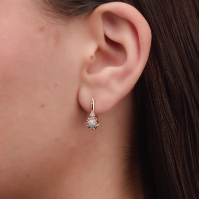 Серьги с 8 бриллиантами природными, 0.06 карат, огранка круг 57 граней, цвет 3, чистота 6, тип огранки А; 12 бриллиантами природными, 0.05 карат, огранка круг 17 граней, цвет 2, чистота 2, тип огранки А; Розовое и белое золото 585 пробы.