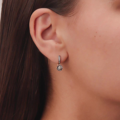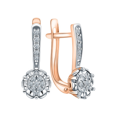 Серьги с 8 бриллиантами природными, 0.06 карат, огранка круг 57 граней, цвет 4, чистота 5, тип огранки А; 16 бриллиантами природными, 0.06 карат, огранка круг 17 граней, цвет 2, чистота 2, тип огранки А; Розовое и белое золото 585 пробы.