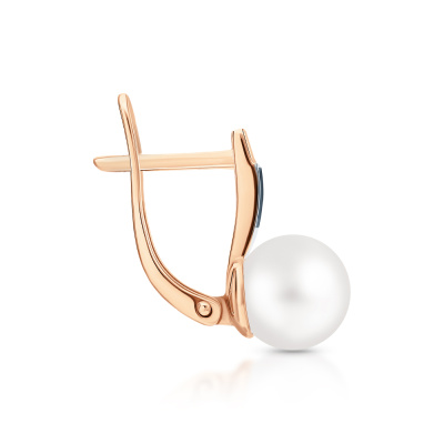 Серьги с 6 бриллиантами природными, 0.01 карат, огранка круг 17 граней, цвет 2, чистота 2, тип огранки А; 2 жемчугами пресноводными культ.белыми; Розовое золото 585 пробы.