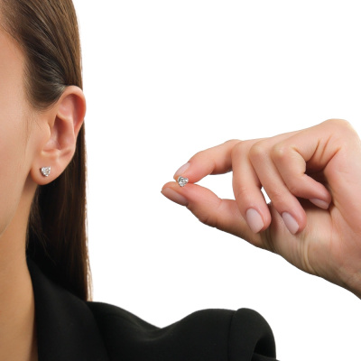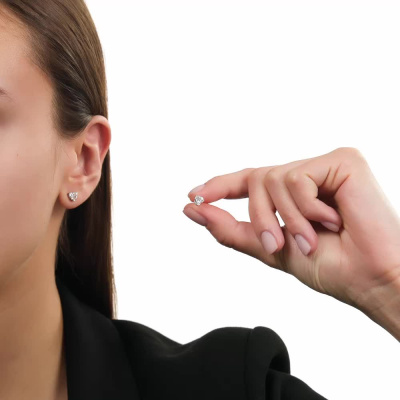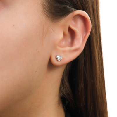 Серьги с 1 бриллиантом природным, 0.5 карат, огранка сердце 57 граней, цвет 2, чистота 6, тип огранки А; 1 бриллиантом природным, 0.5 карат, огранка сердце 57 граней, цвет 3, чистота 6, тип огранки А; Белое золото 585 пробы.