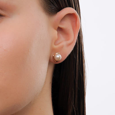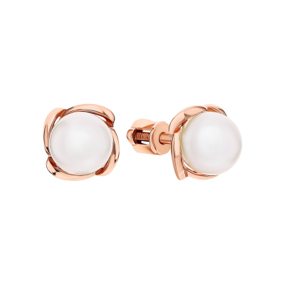 Серьги с 2 жемчугами пресноводными культ.белыми; Розовое золото 585 пробы.