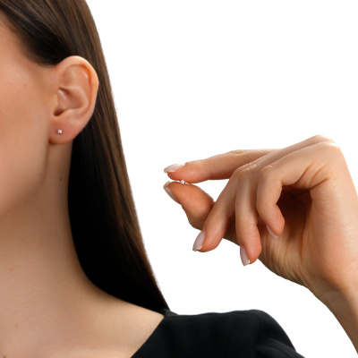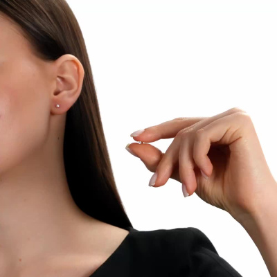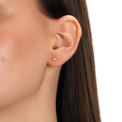 Серьги с 2 бриллиантами природными, 0.06 карат, огранка круг 57 граней, цвет 3, чистота 6, тип огранки А; Розовое золото 585 пробы.