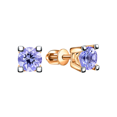 Серьги с 2 танзанитами природными, 1.58 карат; Розовое золото 585 пробы.