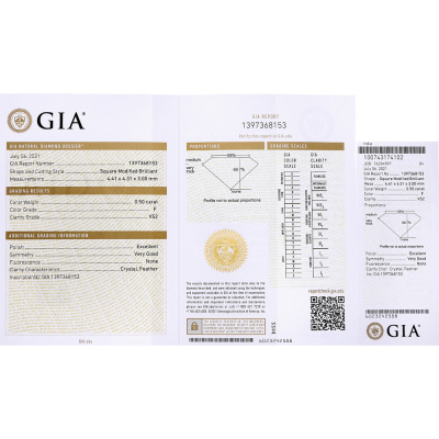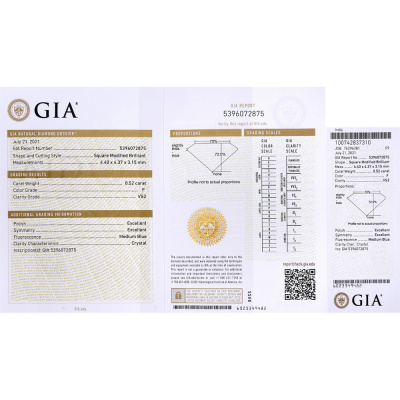 Серьги с 1 бриллиантом природным, 0.5 карат, огранка квадрат 65 граней, цвет 4, чистота 7, тип огранки А; 1 бриллиантом природным, 0.5 карат, огранка принцесса 65 граней, цвет 3, чистота 5, тип огранки А; Белое золото 585 пробы.