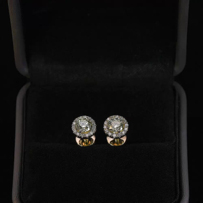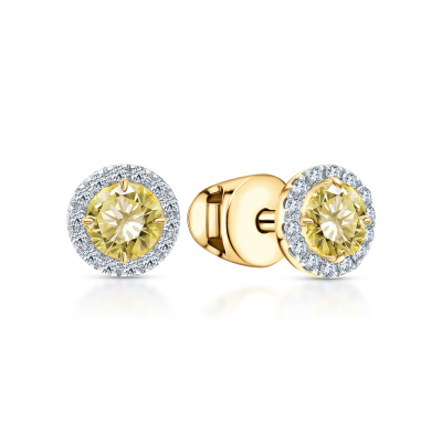 Золотые серьги с бриллиантами и бриллиантами жёлтыми природными