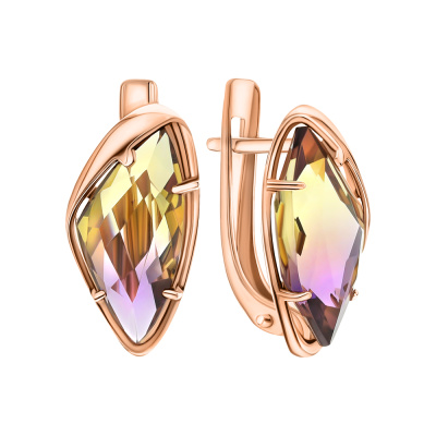 Серьги с 2 аметринами синтетическими, 4.14 карат; Розовое золото 585 пробы.