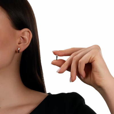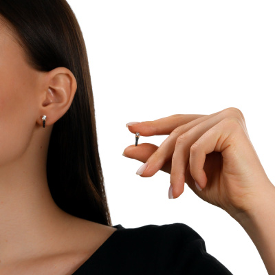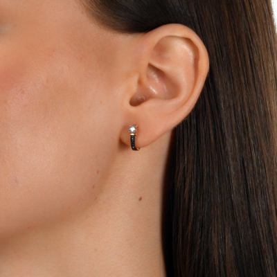 Серьги с 2 бриллиантами природными, 0.04 карат, огранка круг 57 граней, цвет 4, чистота 5, тип огранки А; 8 бриллиантами черными природными облагороженными, 0.03 карат, огранка круг 57 граней, цвет 7, чистота 6, тип огранки А; 12 бриллиантами черными природными облагороженными, 0.03 карат, огранка круг 57 граней, цвет 7, чистота 6, тип огранки А; Розовое и белое золото 585 пробы.