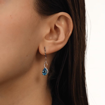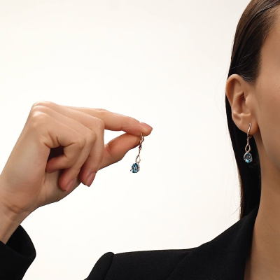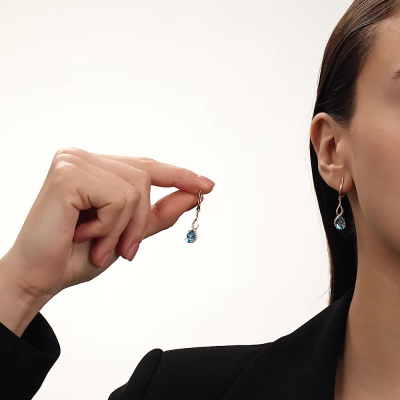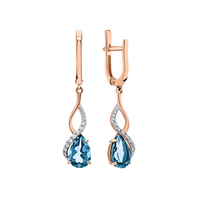 Золотые серьги с фианитами и топазами природными