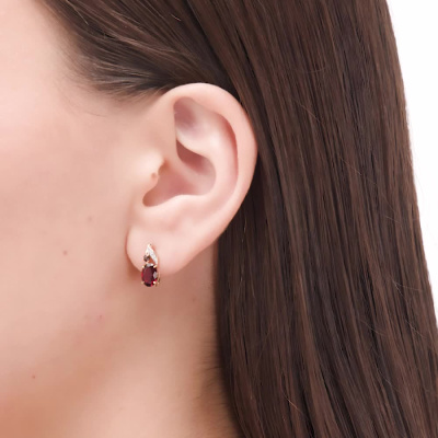 Серьги с 2 бриллиантами природными, 0.006 карат, огранка круг 17 граней, цвет 2, чистота 2, тип огранки А; 4 бриллиантами природными, 0.009 карат, огранка круг 17 граней, цвет 2, чистота 2, тип огранки А; 2 гранатами природными, 1.87 карат; 2 гранатами природными, 0.08 карат; Розовое золото 585 пробы.